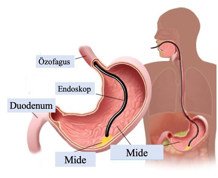Yemek borusu, mide ve ince bağırsağın ilk kısmının (on iki parmak bağırsağı) kamera ile görüntülenmesi işlemidir. Mide ve yemek borusu kanserleri, reflü, ülser, gastrit gibi hastalıkların teşhisi için en iyi yöntemdir. Yaklaşık 5-10 dakika kadar sürer. İşlem esnasında hastalar hafif bir anestezi ile uyutularak işlemi hissetmemesi sağlanır.